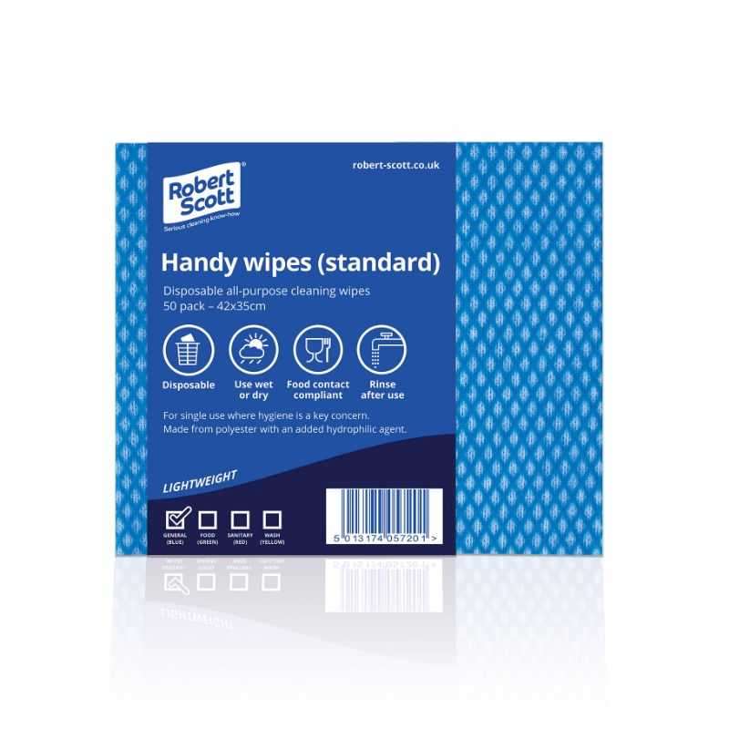 A great value, lightweight and disposable all-purpose cleaning wipe, which is perforated so it provides good absorbency and dirt collection. The Handy wipe is food contact safe.