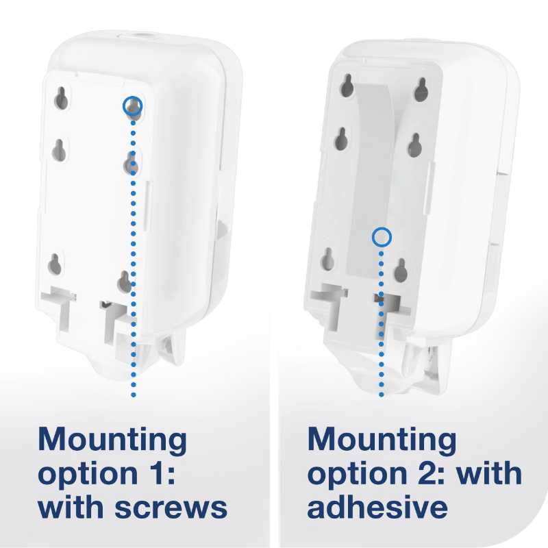 Tork Mini Soap and Sanitiser Dispenser S5: The Tork Mini Soap and Sanitiser Dispenser fits any location. This dispenser can be used with a wide range of Tork soap, sanitiser, shower cream, seat cleaner and lotion refills in hygienically sealed bottles to suit your business needs. Its reliable dispensing, variable dose size and certified easy-to-use design promote good hand hygiene for all users. Make a lasting impression on your guests with the functional and modern design of our most versatile soap and hand sanitiser dispenser.