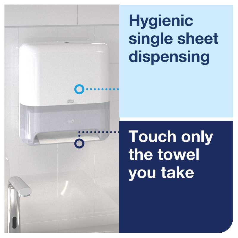 - Boost hygiene with touch-free, one-at-a-time dispensing – the customer only touches the exposed hand towel, not the dispenser.