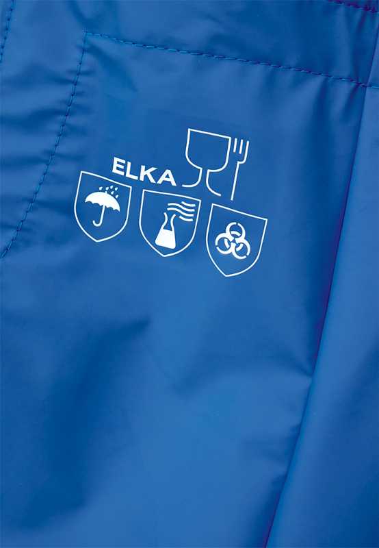 ELKA Food Apron with rings for braces (sold separately) from the ELKA Glass & Fork range - the best waterproof clothing approved for food contact. ELKA PRO is made of the market's strongest PU/polyamide fabric developed in collaboration with European manufacturers. The fabric has high tear strength, and you get good freedom of movement thanks to the flexibility of the fabric.