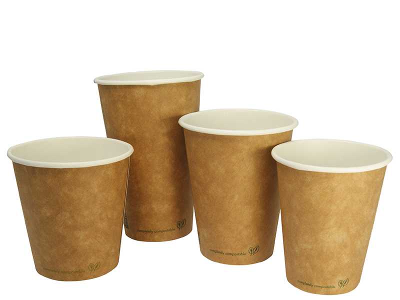 • Our kraft PLA-lined hot drink cups are available in 4, 6, 8, 10, 12 and 16oz, and just say '100% compostable'
