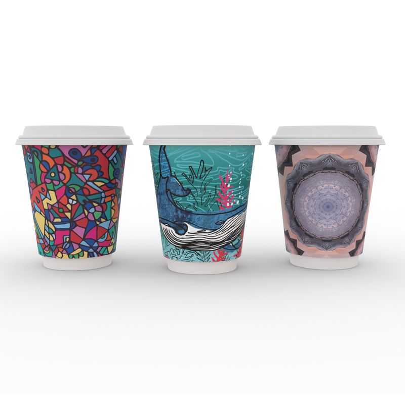 Gorgeous double wall hot cups designed by local artists with high-quality print art finish. Mixed designs in each sleeve.