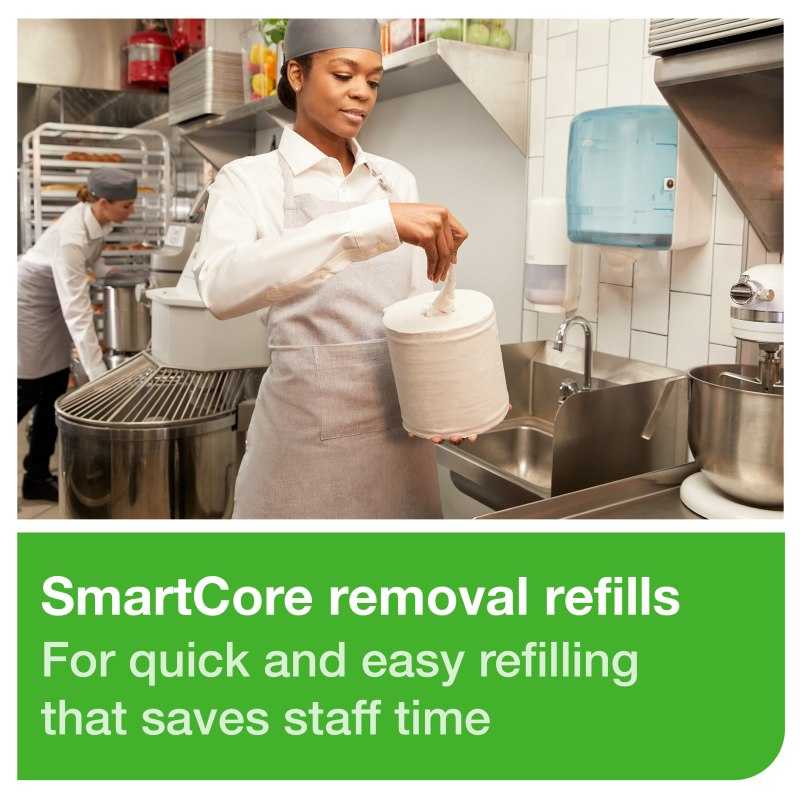 - Easily operate the dispenser with one hand and efficiently refill with our SmartCore. Avoid the hassle of running out of paper with our handy run out indicator.