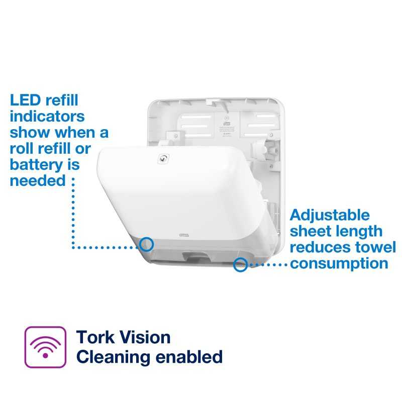 - Simplify maintenance – this easy-to-clean, dual locking design has a refill indicator and is Tork Vision Cleaning compatible.