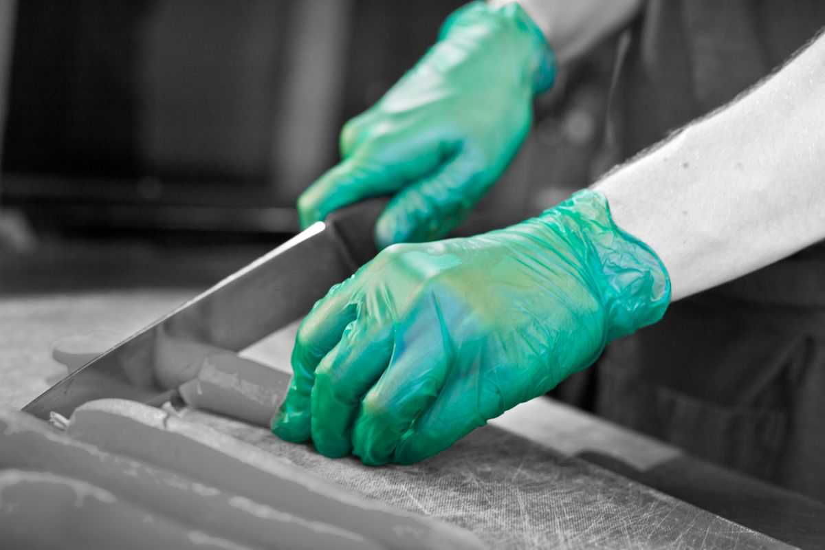 Vinyl powder-free gloves available in choice of 3 colours, red, yellow or green offering colour coding solution.