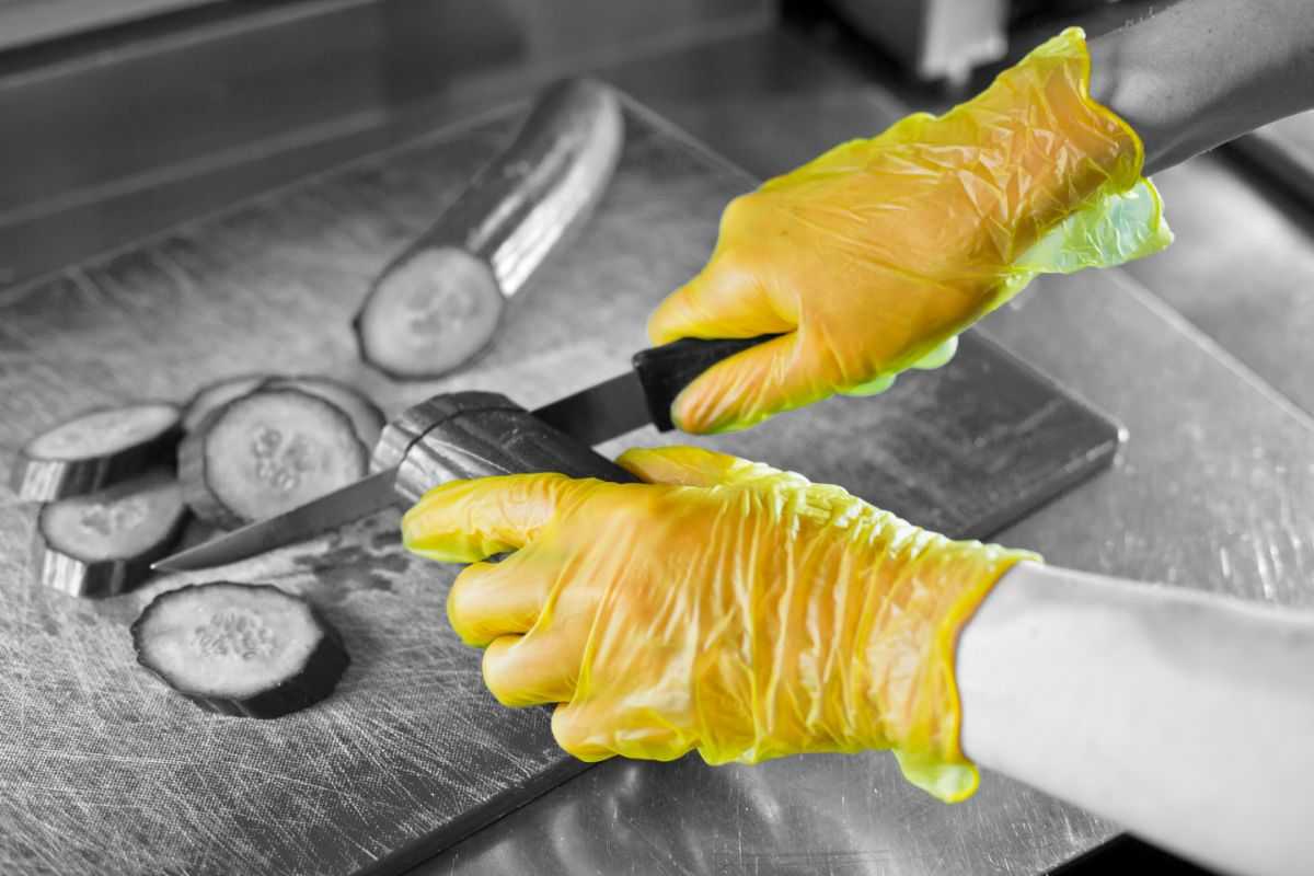 Vinyl powder-free gloves available in choice of 3 colours, red, yellow or green offering colour coding solution.
