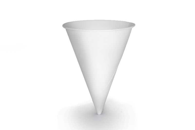4oz cone shaped paper water cup, for cold drinks and single use only. Perfect for use where conventional flat bottomed drinking cups are not suitable.