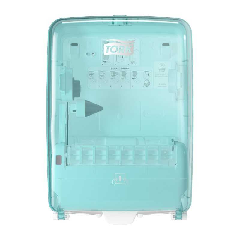 Tork Wall-Mounted Wiping Paper Dispenser Washstation White and Turquoise W6: Food production environments demand the strictest hygiene, and that's where the Tork Wall-Mounted Wiping Paper Dispenser Washstation comes in. This dispenser is designed with spray-downs in mind, with a water-resistant exterior that keeps wiping paper clean and dry. And with the ability to withstand wet and humid conditions, its stainless steel parts won't need replacing frequently. Maintenance time is also cut, thanks to the paper roll dispenser's high capacity.